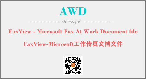 上述内容是“FaxView - Microsoft Fax At Work Document file”作为“AWD”的缩写,解释为“FaxView-Microsoft工作传真文档文件”时的信息,以及英文缩略词AWD所代表的英文单词,其对应的中文拼音、详细解释以及在英文中的流行度和相关分类、应用领域及应用示例等。