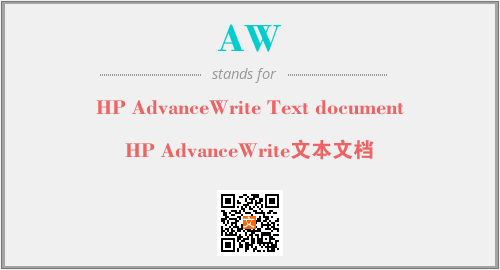 上述内容是“HP AdvanceWrite Text document”作为“AW”的缩写,解释为“HP AdvanceWrite文本文档”时的信息,以及英文缩略词AW所代表的英文单词,其对应的中文拼音、详细解释以及在英文中的流行度和相关分类、应用领域及应用示例等。