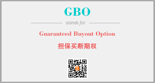 以上为Guaranteed Buyout Option英文缩略词GBO的中文解释,以及该英文缩写在英语的流行度、分类和应用领域方面的信息。