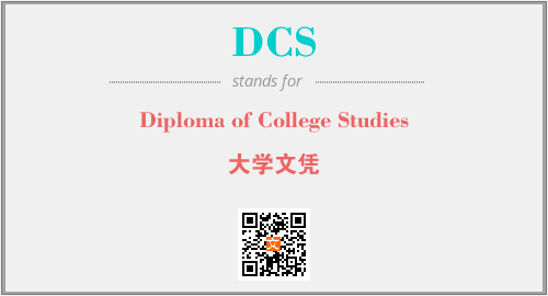 上述内容是“Diploma of College Studies”作为“DCS”的缩写,解释为“大学文凭”时的信息,以及英文缩略词DCS所代表的英文单词,其对应的中文拼音、详细解释以及在英文中的流行度和相关分类、应用领域及应用示例等。