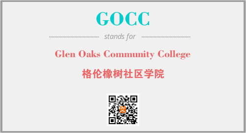 上述内容是“Glen Oaks Community College”作为“GOCC”的缩写,解释为“格伦橡树社区学院”时的信息,以及英文缩略词GOCC所代表的英文单词,其对应的中文拼音、详细解释以及在英文中的流行度和相关分类、应用领域及应用示例等。