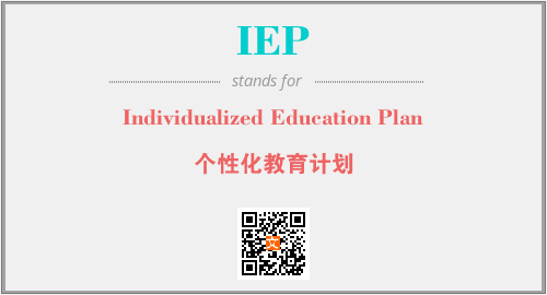英文缩略词“IEP”经常作为“Individualized Education Plan”的英文缩写来使用,中文表示:“个性化教育计划”。本文将详细介绍英文缩写词IEP所代表英文单词,其对应的中文拼音、详细解释以及在英语中的流行度。此外,还有关于缩略词IEP的分类、应用领域及相关应用示例等。