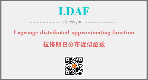 上述内容是“Lagrange distributed approximating function”作为“LDAF”的缩写,解释为“拉格朗日分布近似函数”时的信息,以及英文缩略词LDAF所代表的英文单词,其对应的中文拼音、详细解释以及在英文中的流行度和相关分类、应用领域及应用示例等。