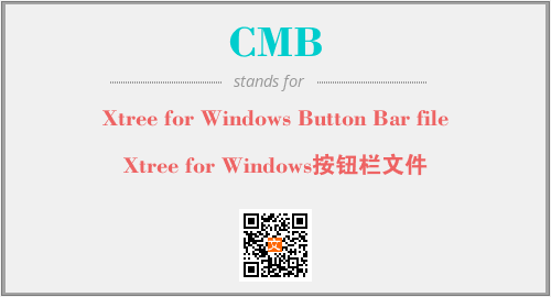 英文缩略词“CMB”经常作为“Xtree for Windows Button Bar file”的英文缩写来使用,中文表示:“Xtree for Windows按钮栏文件”。本文将详细介绍英文缩写词CMB所代表英文单词,其对应的中文拼音、详细解释以及在英语中的流行度。此外,还有关于缩略词CMB的分类、应用领域及相关应用示例等。