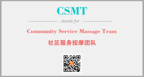 英文缩略词“CSMT”经常作为“Community Service Massage Team”的英文缩写来使用,中文表示:“社区服务按摩团队”。本文将详细介绍英文缩写词CSMT所代表英文单词,其对应的中文拼音、详细解释以及在英语中的流行度。此外,还有关于缩略词CSMT的分类、应用领域及相关应用示例等。