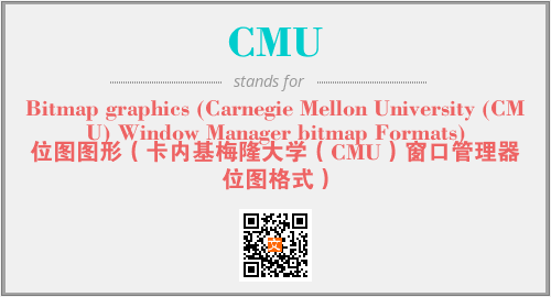 上述内容是“Bitmap graphics (Carnegie Mellon University (CMU) Window Manager bitmap Formats)”作为“CMU”的缩写,解释为“位图图形(卡内基梅隆大学(CMU)窗口管理器位图格式)”时的信息,以及英文缩略词CMU所代表的英文单词,其对应的中文拼音、详细解释以及在英文中的流行度和相关分类、应用领域及应用示例等。