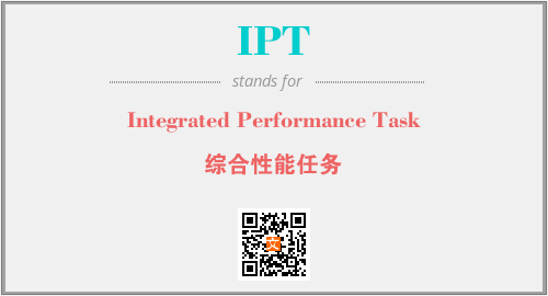 英文缩略词“IPT”经常作为“Integrated Performance Task”的英文缩写来使用,中文表示:“综合性能任务”。本文将详细介绍英文缩写词IPT所代表英文单词,其对应的中文拼音、详细解释以及在英语中的流行度。此外,还有关于缩略词IPT的分类、应用领域及相关应用示例等。