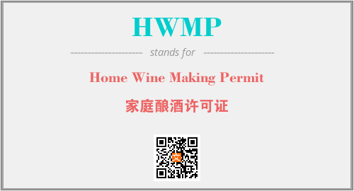英文缩略词“HWMP”经常作为“Home Wine Making Permit”的英文缩写来使用,中文表示:“家庭酿酒许可证”。本文将详细介绍英文缩写词HWMP所代表英文单词,其对应的中文拼音、详细解释以及在英语中的流行度。此外,还有关于缩略词HWMP的分类、应用领域及相关应用示例等。