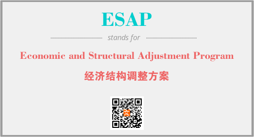 英文缩略词“ESAP”经常作为“Economic and Structural Adjustment Program”的英文缩写来使用,中文表示:“经济结构调整方案”。本文将详细介绍英文缩写词ESAP所代表英文单词,其对应的中文拼音、详细解释以及在英语中的流行度。此外,还有关于缩略词ESAP的分类、应用领域及相关应用示例等。