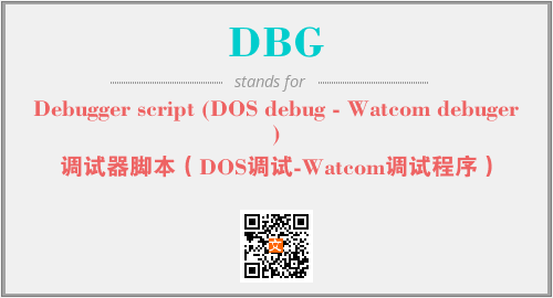 英文缩略词“DBG”经常作为“Debugger script (DOS debug - Watcom debuger)”的英文缩写来使用,中文表示:“调试器脚本(DOS调试-Watcom调试程序)”。本文将详细介绍英文缩写词DBG所代表英文单词,其对应的中文拼音、详细解释以及在英语中的流行度。此外,还有关于缩略词DBG的分类、应用领域及相关应用示例等。