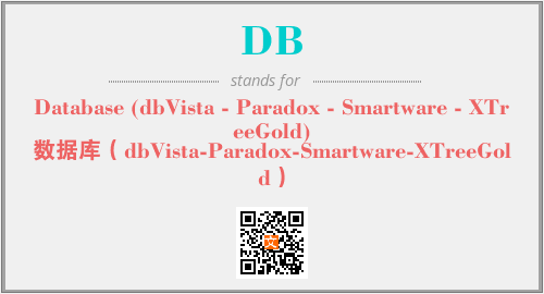 上述内容是“Database (dbVista - Paradox - Smartware - XTreeGold)”作为“DB”的缩写,解释为“数据库(dbVista-Paradox-Smartware-XTreeGold)”时的信息,以及英文缩略词DB所代表的英文单词,其对应的中文拼音、详细解释以及在英文中的流行度和相关分类、应用领域及应用示例等。