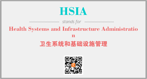 上述内容是“Health Systems and Infrastructure Administration”作为“HSIA”的缩写,解释为“卫生系统和基础设施管理”时的信息,以及英文缩略词HSIA所代表的英文单词,其对应的中文拼音、详细解释以及在英文中的流行度和相关分类、应用领域及应用示例等。