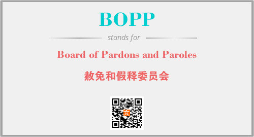 上述内容是“Board of Pardons and Paroles”作为“BOPP”的缩写,解释为“赦免和假释委员会”时的信息,以及英文缩略词BOPP所代表的英文单词,其对应的中文拼音、详细解释以及在英文中的流行度和相关分类、应用领域及应用示例等。