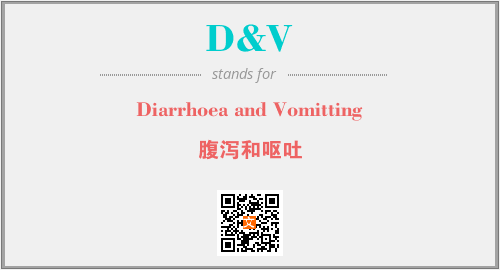 上述内容是“Diarrhoea and Vomitting”作为“D&V”的缩写,解释为“腹泻和呕吐”时的信息,以及英文缩略词D&V所代表的英文单词,其对应的中文拼音、详细解释以及在英文中的流行度和相关分类、应用领域及应用示例等。