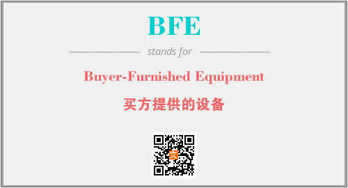 上述内容是“Buyer-Furnished Equipment”作为“BFE”的缩写,解释为“买方提供的设备”时的信息,以及英文缩略词BFE所代表的英文单词,其对应的中文拼音、详细解释以及在英文中的流行度和相关分类、应用领域及应用示例等。