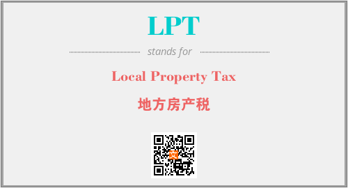 上述内容是“Local Property Tax”作为“LPT”的缩写,解释为“地方房产税”时的信息,以及英文缩略词LPT所代表的英文单词,其对应的中文拼音、详细解释以及在英文中的流行度和相关分类、应用领域及应用示例等。