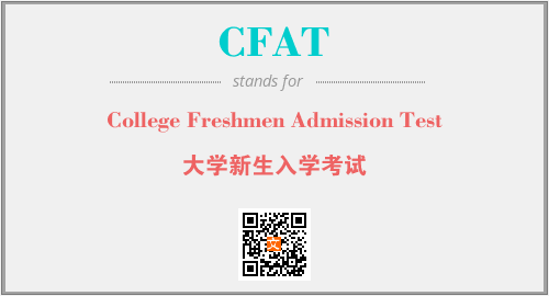 英文缩略词“CFAT”经常作为“College Freshmen Admission Test”的英文缩写来使用,中文表示:“大学新生入学考试”。本文将详细介绍英文缩写词CFAT所代表英文单词,其对应的中文拼音、详细解释以及在英语中的流行度。此外,还有关于缩略词CFAT的分类、应用领域及相关应用示例等。