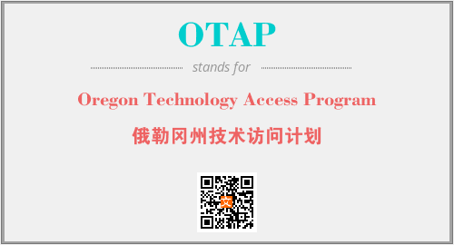 上述内容是“Oregon Technology Access Program”作为“OTAP”的缩写,解释为“俄勒冈州技术访问计划”时的信息,以及英文缩略词OTAP所代表的英文单词,其对应的中文拼音、详细解释以及在英文中的流行度和相关分类、应用领域及应用示例等。