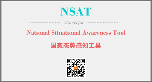 上述内容是“National Situational Awareness Tool”作为“NSAT”的缩写,解释为“国家态势感知工具”时的信息,以及英文缩略词NSAT所代表的英文单词,其对应的中文拼音、详细解释以及在英文中的流行度和相关分类、应用领域及应用示例等。