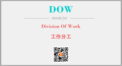 英文缩略词“DOW”经常作为“Division Of Work”的英文缩写来使用,中文表示:“工作分工”。本文将详细介绍英文缩写词DOW所代表英文单词,其对应的中文拼音、详细解释以及在英语中的流行度。此外,还有关于缩略词DOW的分类、应用领域及相关应用示例等。