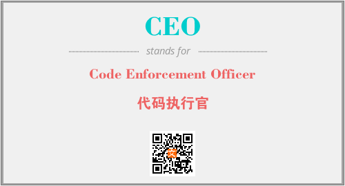 英文缩略词“CEO”经常作为“Code Enforcement Officer”的英文缩写来使用,中文表示:“代码执行官”。本文将详细介绍英文缩写词CEO所代表英文单词,其对应的中文拼音、详细解释以及在英语中的流行度。此外,还有关于缩略词CEO的分类、应用领域及相关应用示例等。