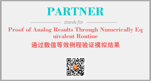 上述内容是“Proof of Analog Results Through Numerically Equivalent Routine”作为“PARTNER”的缩写,解释为“通过数值等效例程验证模拟结果”时的信息,以及英文缩略词PARTNER所代表的英文单词,其对应的中文拼音、详细解释以及在英文中的流行度和相关分类、应用领域及应用示例等。