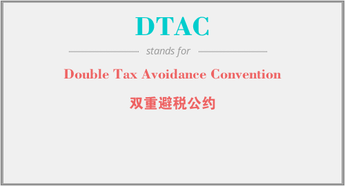 上述内容是“Double Tax Avoidance Convention”作为“DTAC”的缩写,解释为“双重避税公约”时的信息,以及英文缩略词DTAC所代表的英文单词,其对应的中文拼音、详细解释以及在英文中的流行度和相关分类、应用领域及应用示例等。