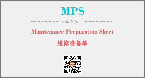 英文缩略词“MPS”经常作为“Maintenance Preparation Sheet”的英文缩写来使用,中文表示:“维修准备单”。本文将详细介绍英文缩写词MPS所代表英文单词,其对应的中文拼音、详细解释以及在英语中的流行度。此外,还有关于缩略词MPS的分类、应用领域及相关应用示例等。