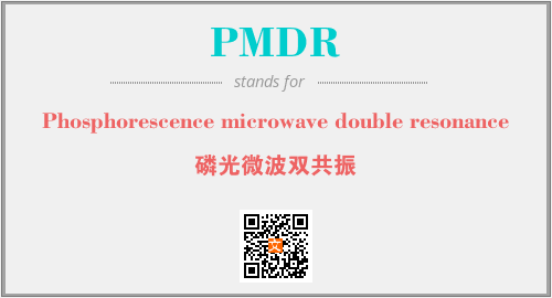 上述内容是“Phosphorescence microwave double resonance”作为“PMDR”的缩写,解释为“磷光微波双共振”时的信息,以及英文缩略词PMDR所代表的英文单词,其对应的中文拼音、详细解释以及在英文中的流行度和相关分类、应用领域及应用示例等。