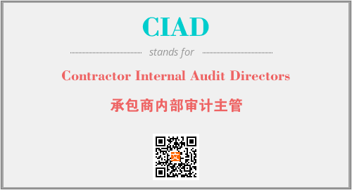 上述内容是“Contractor Internal Audit Directors”作为“CIAD”的缩写,解释为“承包商内部审计主管”时的信息,以及英文缩略词CIAD所代表的英文单词,其对应的中文拼音、详细解释以及在英文中的流行度和相关分类、应用领域及应用示例等。