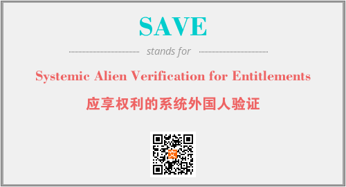 上述内容是“Systemic Alien Verification for Entitlements”作为“SAVE”的缩写,解释为“应享权利的系统外国人验证”时的信息,以及英文缩略词SAVE所代表的英文单词,其对应的中文拼音、详细解释以及在英文中的流行度和相关分类、应用领域及应用示例等。