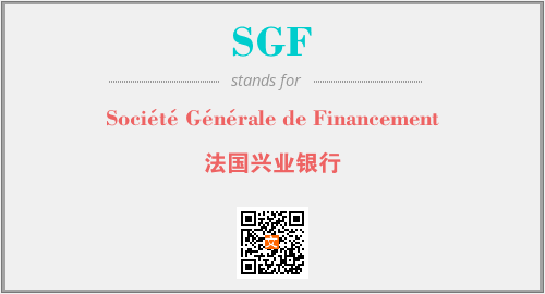上述内容是“Société Générale de Financement”作为“SGF”的缩写,解释为“法国兴业银行”时的信息,以及英文缩略词SGF所代表的英文单词,其对应的中文拼音、详细解释以及在英文中的流行度和相关分类、应用领域及应用示例等。