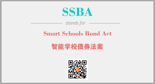 英文缩略词“SSBA”经常作为“Smart Schools Bond Act”的英文缩写来使用,中文表示:“智能学校债券法案”。本文将详细介绍英文缩写词SSBA所代表英文单词,其对应的中文拼音、详细解释以及在英语中的流行度。此外,还有关于缩略词SSBA的分类、应用领域及相关应用示例等。