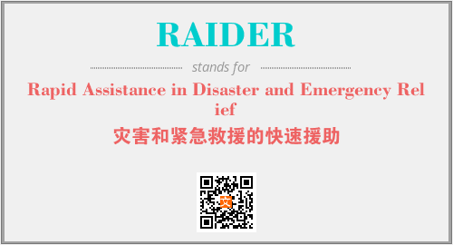 上述内容是“Rapid Assistance in Disaster and Emergency Relief”作为“RAIDER”的缩写,解释为“灾害和紧急救援的快速援助”时的信息,以及英文缩略词RAIDER所代表的英文单词,其对应的中文拼音、详细解释以及在英文中的流行度和相关分类、应用领域及应用示例等。