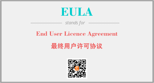 上述内容是“End User Licence Agreement”作为“EULA”的缩写,解释为“最终用户许可协议”时的信息,以及英文缩略词EULA所代表的英文单词,其对应的中文拼音、详细解释以及在英文中的流行度和相关分类、应用领域及应用示例等。