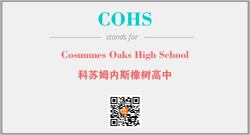 英文缩略词“COHS”经常作为“Cosumnes Oaks High School”的英文缩写来使用,中文表示:“科苏姆内斯橡树高中”。本文将详细介绍英文缩写词COHS所代表英文单词,其对应的中文拼音、详细解释以及在英语中的流行度。此外,还有关于缩略词COHS的分类、应用领域及相关应用示例等。