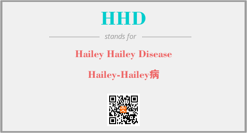 上述内容是“Hailey Hailey Disease”作为“HHD”的缩写,解释为“Hailey-Hailey病”时的信息,以及英文缩略词HHD所代表的英文单词,其对应的中文拼音、详细解释以及在英文中的流行度和相关分类、应用领域及应用示例等。