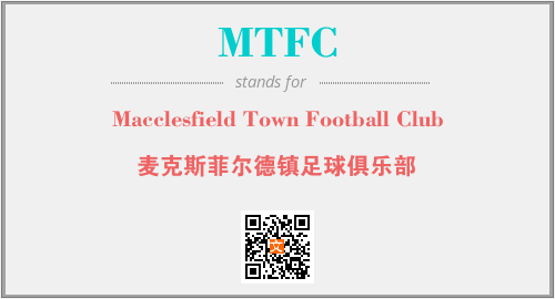 上述内容是“Macclesfield Town Football Club”作为“MTFC”的缩写,解释为“麦克斯菲尔德镇足球俱乐部”时的信息,以及英文缩略词MTFC所代表的英文单词,其对应的中文拼音、详细解释以及在英文中的流行度和相关分类、应用领域及应用示例等。
