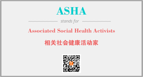 英文缩略词“ASHA”经常作为“Associated Social Health Activists”的英文缩写来使用,中文表示:“相关社会健康活动家”。本文将详细介绍英文缩写词ASHA所代表英文单词,其对应的中文拼音、详细解释以及在英语中的流行度。此外,还有关于缩略词ASHA的分类、应用领域及相关应用示例等。
