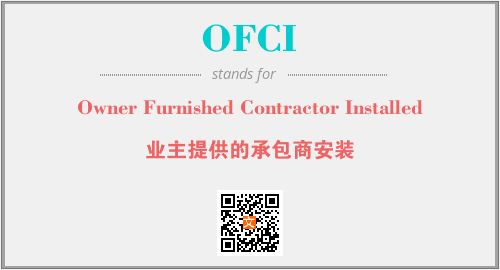 英文缩略词“OFCI”经常作为“Owner Furnished Contractor Installed”的英文缩写来使用,中文表示:“业主提供的承包商安装”。本文将详细介绍英文缩写词OFCI所代表英文单词,其对应的中文拼音、详细解释以及在英语中的流行度。此外,还有关于缩略词OFCI的分类、应用领域及相关应用示例等。