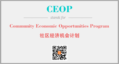 英文缩略词“CEOP”经常作为“Community Economic Opportunities Program”的英文缩写来使用,中文表示:“社区经济机会计划”。本文将详细介绍英文缩写词CEOP所代表英文单词,其对应的中文拼音、详细解释以及在英语中的流行度。此外,还有关于缩略词CEOP的分类、应用领域及相关应用示例等。