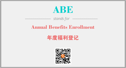 以上为Annual Benefits Enrollment英文缩略词ABE的中文解释,以及该英文缩写在英语的流行度、分类和应用领域方面的信息。