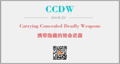 英文缩略词“CCDW”经常作为“Carrying Concealed Deadly Weapons”的英文缩写来使用,中文表示:“携带隐藏的致命武器”。本文将详细介绍英文缩写词CCDW所代表英文单词,其对应的中文拼音、详细解释以及在英语中的流行度。此外,还有关于缩略词CCDW的分类、应用领域及相关应用示例等。