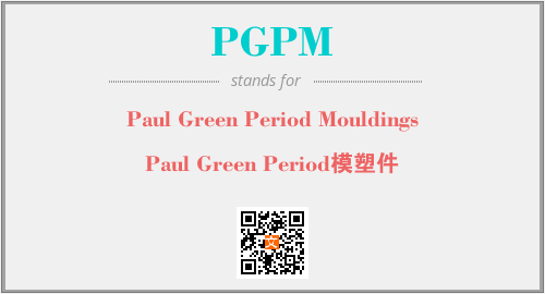 英文缩略词“PGPM”经常作为“Paul Green Period Mouldings”的英文缩写来使用,中文表示:“Paul Green Period模塑件”。本文将详细介绍英文缩写词PGPM所代表英文单词,其对应的中文拼音、详细解释以及在英语中的流行度。此外,还有关于缩略词PGPM的分类、应用领域及相关应用示例等。