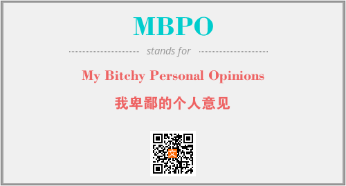 以上为My Bitchy Personal Opinions英文缩略词MBPO的中文解释,以及该英文缩写在英语的流行度、分类和应用领域方面的信息。