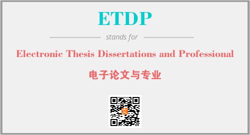 英文缩略词“ETDP”经常作为“Electronic Thesis Dissertations and Professional”的英文缩写来使用,中文表示:“电子论文与专业”。本文将详细介绍英文缩写词ETDP所代表英文单词,其对应的中文拼音、详细解释以及在英语中的流行度。此外,还有关于缩略词ETDP的分类、应用领域及相关应用示例等。