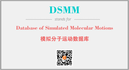 上述内容是“Database of Simulated Molecular Motions”作为“DSMM”的缩写,解释为“模拟分子运动数据库”时的信息,以及英文缩略词DSMM所代表的英文单词,其对应的中文拼音、详细解释以及在英文中的流行度和相关分类、应用领域及应用示例等。