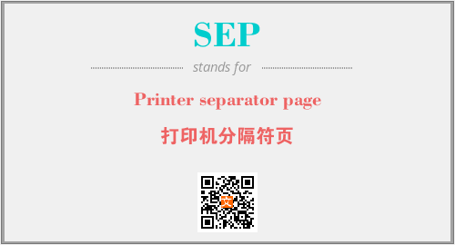 英文缩略词“SEP”经常作为“Printer separator page”的英文缩写来使用,中文表示:“打印机分隔符页”。本文将详细介绍英文缩写词SEP所代表英文单词,其对应的中文拼音、详细解释以及在英语中的流行度。此外,还有关于缩略词SEP的分类、应用领域及相关应用示例等。