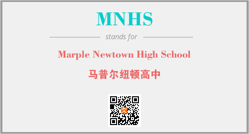 英文缩略词“MNHS”经常作为“Marple Newtown High School”的英文缩写来使用,中文表示:“马普尔纽顿高中”。本文将详细介绍英文缩写词MNHS所代表英文单词,其对应的中文拼音、详细解释以及在英语中的流行度。此外,还有关于缩略词MNHS的分类、应用领域及相关应用示例等。