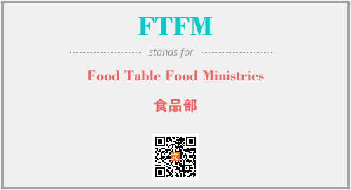 上述内容是“Food Table Food Ministries”作为“FTFM”的缩写,解释为“食品部”时的信息,以及英文缩略词FTFM所代表的英文单词,其对应的中文拼音、详细解释以及在英文中的流行度和相关分类、应用领域及应用示例等。